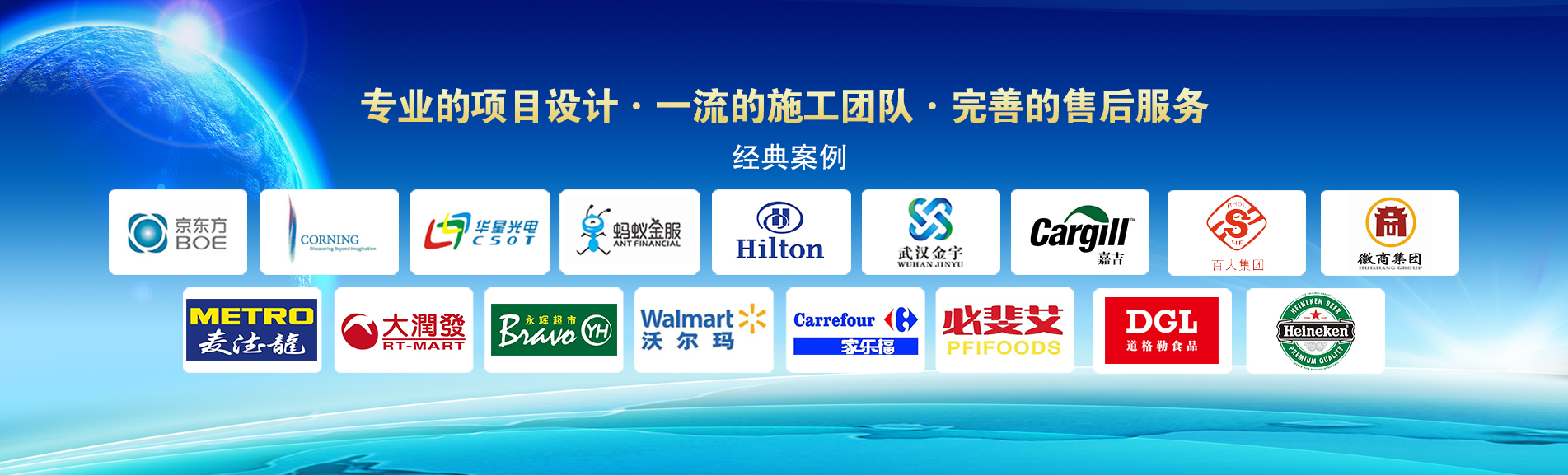 冷凍冷藏設(shè)備大型冷庫項(xiàng)目: 武漢中百物流冷庫(40000㎡)、蘇州、北京普洛斯大型物流庫(17000㎡)、沈陽佳德物流冷庫(20000㎡)、上海東航配餐物流庫(6000㎡)、杭州華商勾莊物流冷庫(24000㎡)、安徽安心蔬菜綠色食品冷庫(12000㎡)、武漢金宇冷庫(35000㎡)、必斐艾食品廠(14000㎡)、中國-東盟(百色)農(nóng)產(chǎn)品交易中心冷庫物流工程(30000㎡)、遵鐵物流冷鏈物流區(qū)建設(shè)項(xiàng)目中心冷庫物流工程(16500㎡)、長沙云冷產(chǎn)業(yè)園冷庫物流工程(21000㎡)等;大型中央空調(diào)項(xiàng)目: 武漢康寧顯示玻璃廠廠房、武漢京東方模組廠房、武漢華星光電模組廠房、深圳華星光電模組廠房,杭州阿里巴巴辦公樓,舟山波音737機(jī)場(chǎng)辦公樓,南京江北能源站、上海金融大酒店等